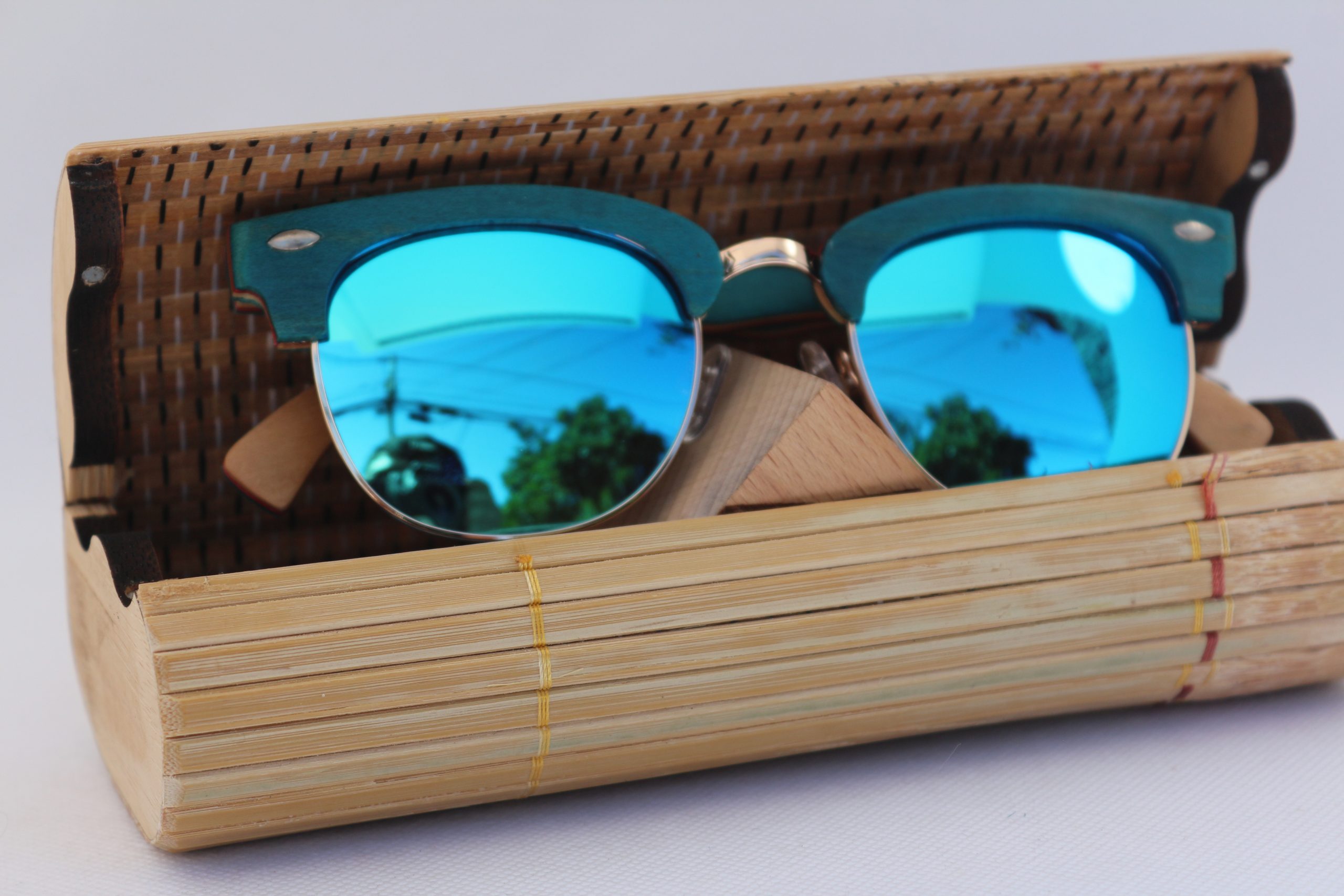 Gafas de sol polarizadas con montura de madera azul, de bambú con soporte de metal, estilo exclusivo.