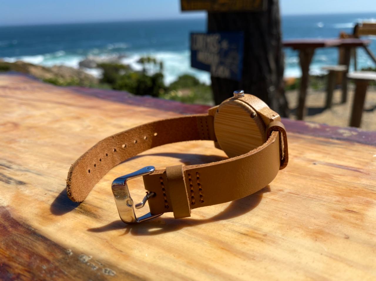 Reloj de Madera bambú correa de cuero, Ideal para personal de estilo natural y ecológicas.