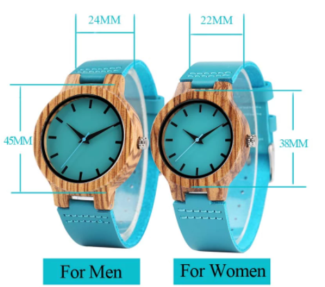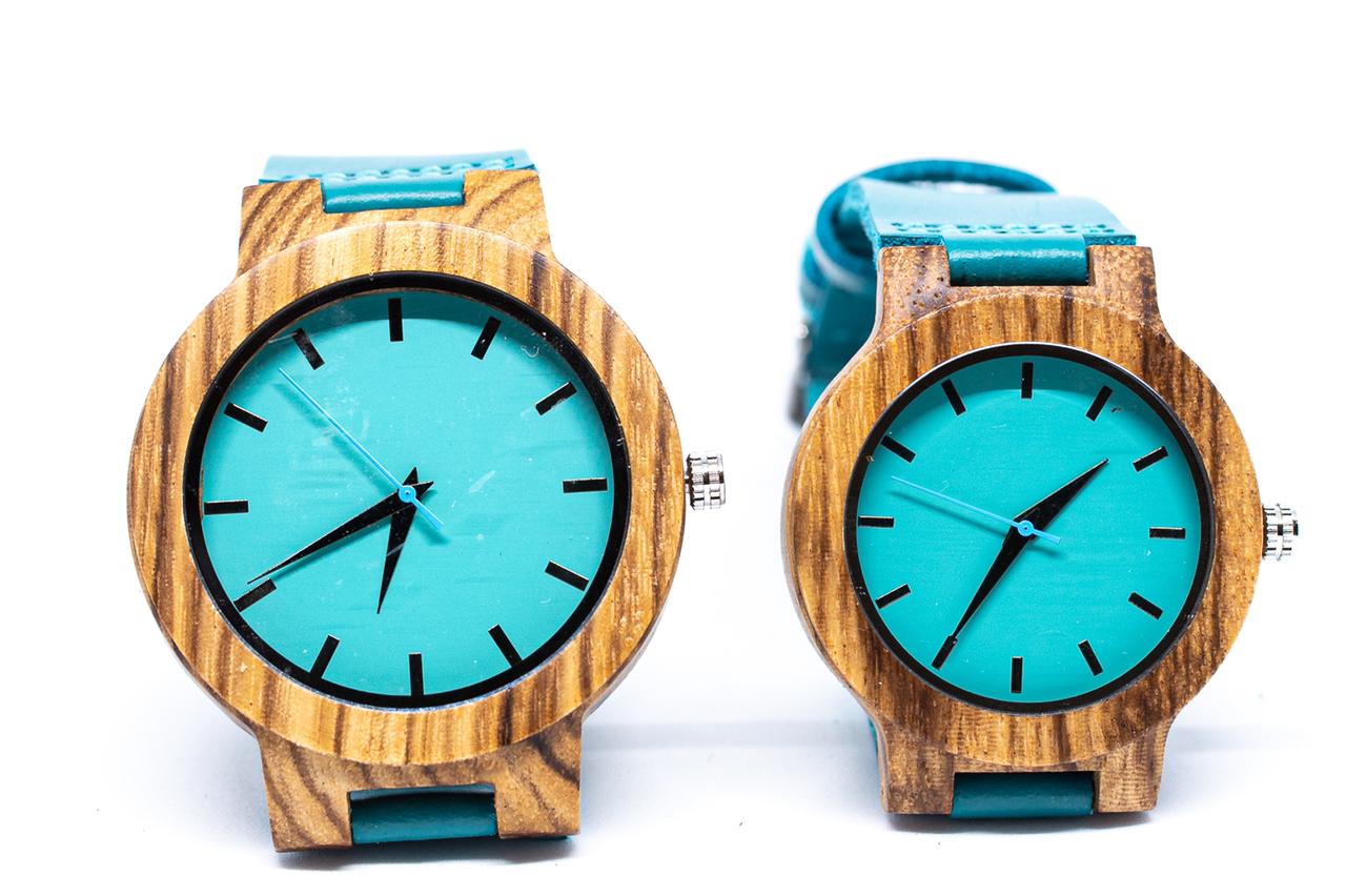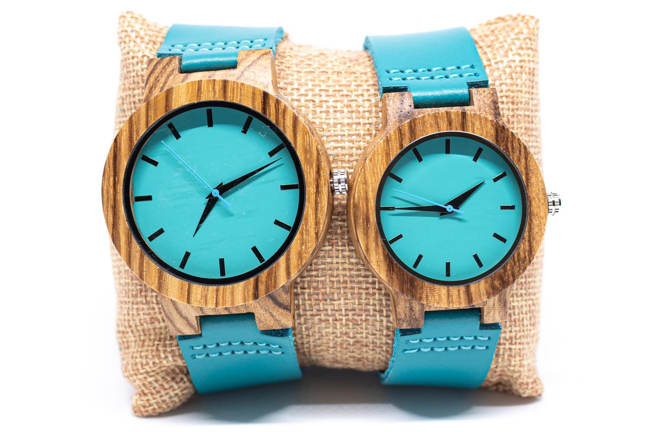 Reloj de madera en dúos de Bambú para hombre y mujer, cronógrafo de cuarzo, calipso con caja de regalo, también lo tenemos en formato para parejas donde el reloj de hombre tiene unas dimensiones un poco mayor al de la mujer.